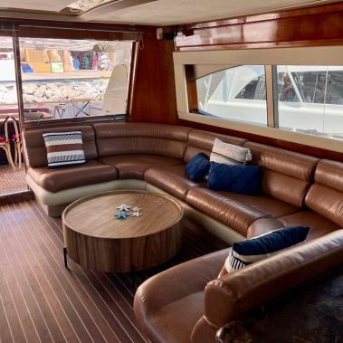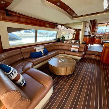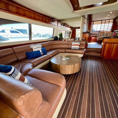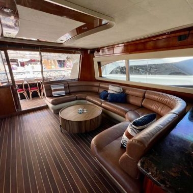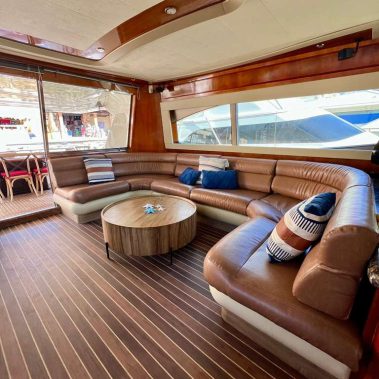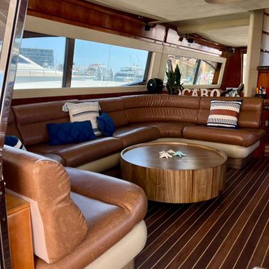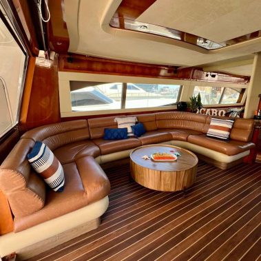 Welcome aboard to the 80ft Ferretti- Patrón. Once you step onboard the yacht, you’ll be whisked away to a world of opulence, relaxation, and elegance. Our yacht boasts a roomy deck, plush seating above and below, and an open bar to keep you hydrated during your trip. Our professional crew is committed to ensuring your comfort and safety, and they’re always available to address any queries you might have.