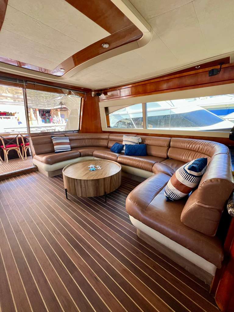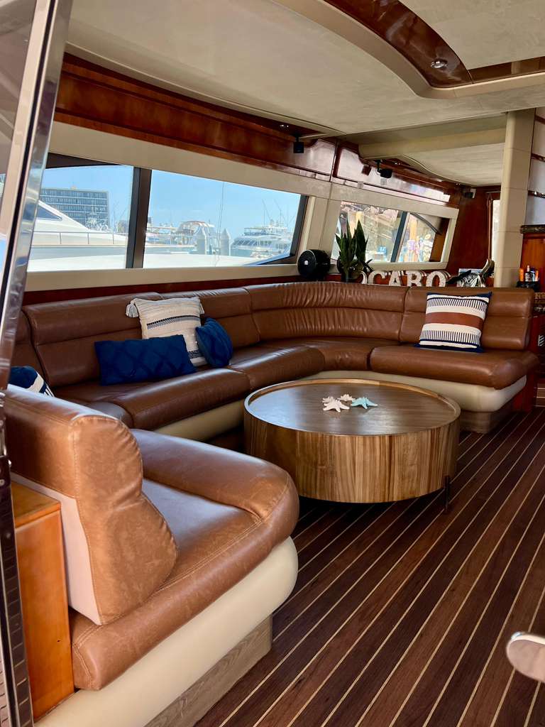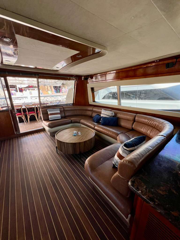 Welcome aboard to the 80ft Ferretti- Patrón. Once you step onboard the yacht, you’ll be whisked away to a world of opulence, relaxation, and elegance. Our yacht boasts a roomy deck, plush seating above and below, and an open bar to keep you hydrated during your trip. Our professional crew is committed to ensuring your comfort and safety, and they’re always available to address any queries you might have.