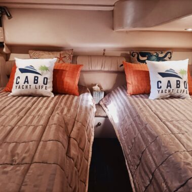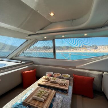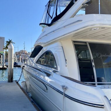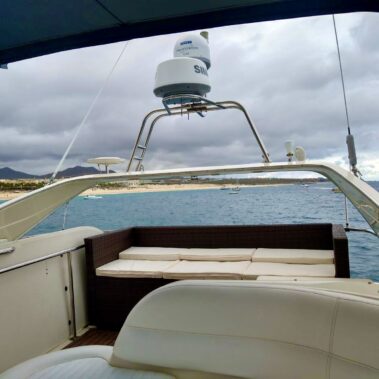 This 52 foot yacht for charter in Cabo called “Opulence” is built for those who enjoy the very best. The yacht features wide open outdoor spaces. The interior features a spacious salon and a huge cabin. This Yacht has a ton of bow space with very comfortable cushions. The salon is pristine and comfortable, with powerful air conditioning in the cockpit and 2 bathrooms, including snorkel gear, water pad to float and much more. For larger groups of over 10 guests, maximum capacity 18 passengers. Please contact us at [email protected].