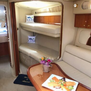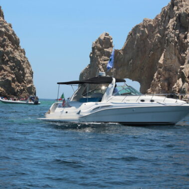 The Cabo Yacht Life is our featured yacht. Winner of an NMMA Innovation Award, the 47-foot Sea Ray Sundancer, sometimes called “The Entertainer”, combines peak performance, superior comfort, incredible versatility and style, and state-of-the-art technology.